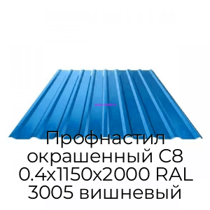 Профнастил окрашенный С8 0.4х1150х2000 RAL 3005 вишневый - продажа оптом и в розницу по цене от 1061 руб. в Москве. Доставка по Москве и всей России