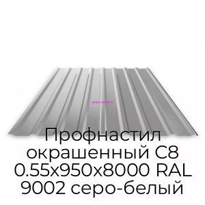 Профнастил окрашенный С8 0.55х950х8000 RAL 9002 серо-белый - продажа оптом и в розницу по цене от 1197 руб. в Москве. Доставка по Москве и всей России