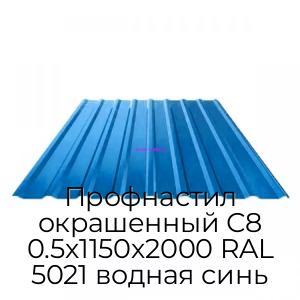 - Профнастил окрашенный С8 0.5х1150х2000 RAL 5021 водная синь N19603