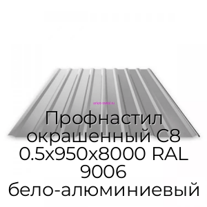 - Профнастил окрашенный С8 0.5х950х8000 RAL 9006 бело-алюминиевый N19688