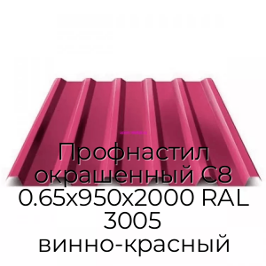 Профнастил окрашенный С8 0.65х950х2000 RAL 3005 винно-красный - продажа оптом и в розницу по цене от 1455 руб. в Москве. Доставка по Москве и всей России