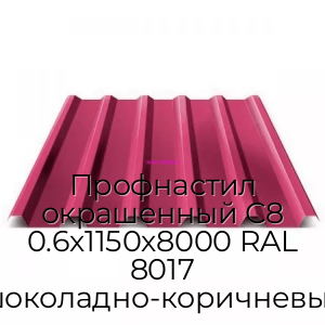 Профнастил окрашенный С8 0.6х1150х8000 RAL 8017 шоколадно-коричневый - продажа оптом и в розницу по цене от 880 руб. в Москве. Доставка по Москве и всей России