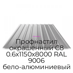 Профнастил окрашенный С8 0.6х1150х8000 RAL 9006 бело-алюминиевый - продажа оптом и в розницу по цене от 889 руб. в Москве. Доставка по Москве и всей России