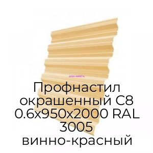 Профнастил окрашенный С8 0.6х950х2000 RAL 3005 винно-красный - продажа оптом и в розницу по цене от 627 руб. в Москве. Доставка по Москве и всей России