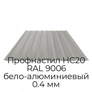 Профнастил НС20 RAL 9006 представляет собой стальной лист с рифлением, дополненный полимерным покрытием. Представлен в востребованном и универсальном графитовом сером оттенке и изготовлен с помощью современного профилегибочного оборудования в соответствии с требованиями ГОСТ. Имеет стандартизированные размеры: общей шириной 1150, мм и толщиной металла 0.4 мм.