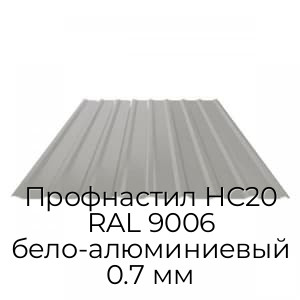 Профнастил НС20 RAL 9006 представляет собой стальной лист с рифлением, дополненный полимерным покрытием. Представлен в востребованном и универсальном графитовом сером оттенке и изготовлен с помощью современного профилегибочного оборудования в соответствии с требованиями ГОСТ. Имеет стандартизированные размеры: общей шириной 1150, мм и толщиной металла 0.7 мм.
