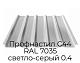Купить профнастил RAL 7035 в Москве на выгодных условиях можно в компании Арион-Металл. Наши менеджеры всегда готовы подробно проконсультировать по всем особенностям продукции, оформить заказ на ее необходимый объем и организовать оперативную доставку.