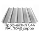 Профнастил С44 RAL 7040 представляет собой стальной лист с рифлением, дополненный полимерным покрытием. Представлен в востребованном и универсальном графитовом сером оттенке и изготовлен с помощью современного профилегибочного оборудования в соответствии с требованиями ГОСТ. Имеет стандартизированные размеры: общей шириной 1047, мм и толщиной металла 0.5 мм.