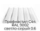 Профнастил С44 RAL 9002 представляет собой стальной лист с рифлением, дополненный полимерным покрытием. Представлен в востребованном и универсальном графитовом сером оттенке и изготовлен с помощью современного профилегибочного оборудования в соответствии с требованиями ГОСТ. Имеет стандартизированные размеры: общей шириной 1047, мм и толщиной металла 0.6 мм.