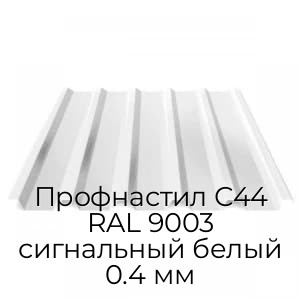 Профнастил С44 RAL 9003 представляет собой стальной лист с рифлением, дополненный полимерным покрытием. Представлен в востребованном и универсальном графитовом сером оттенке и изготовлен с помощью современного профилегибочного оборудования в соответствии с требованиями ГОСТ. Имеет стандартизированные размеры: общей шириной 1047, мм и толщиной металла 0.4 мм.