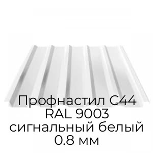 Профнастил С44 RAL 9003 представляет собой стальной лист с рифлением, дополненный полимерным покрытием. Представлен в востребованном и универсальном графитовом сером оттенке и изготовлен с помощью современного профилегибочного оборудования в соответствии с требованиями ГОСТ. Имеет стандартизированные размеры: общей шириной 1047, мм и толщиной металла 0.8 мм.