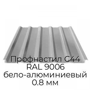 Профнастил С44 RAL 9006 представляет собой стальной лист с рифлением, дополненный полимерным покрытием. Представлен в востребованном и универсальном графитовом сером оттенке и изготовлен с помощью современного профилегибочного оборудования в соответствии с требованиями ГОСТ. Имеет стандартизированные размеры: общей шириной 1047, мм и толщиной металла 0.8 мм.