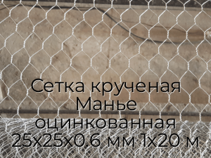 Сетка крученая Манье оцинкованная 25х25х0.6 мм 1х20 м - продажа оптом и в розницу по цене от 203 руб. в Москве. Доставка по Москве и всей России
