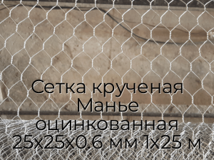 Сетка крученая Манье оцинкованная 25х25х0.6 мм 1х25 м - продажа оптом и в розницу по цене от 216 руб. в Москве. Доставка по Москве и всей России