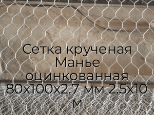 Сетка крученая Манье оцинкованная 80х100х2.7 мм 2.5х10 м - продажа оптом и в розницу по цене от 261 руб. в Москве. Доставка по Москве и всей России