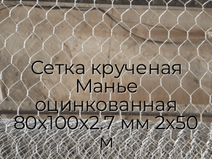 Сетка крученая Манье оцинкованная 80х100х2.7 мм 2х50 м - продажа оптом и в розницу по цене от 308 руб. в Москве. Доставка по Москве и всей России