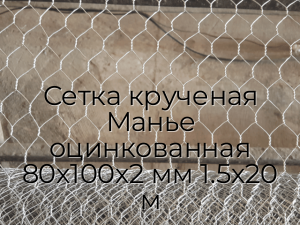 Сетка крученая Манье оцинкованная 80х100х2 мм 1.5х20 м - продажа оптом и в розницу по цене от 246 руб. в Москве. Доставка по Москве и всей России