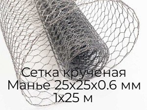 Сетка крученая Манье 25х25х0.6 мм 1х25 м - продажа оптом и в розницу по цене от 192 руб. в Москве. Доставка по Москве и всей России