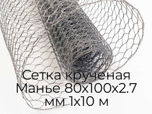 - Сетка крученая Манье 80х100х2.7 мм 1х10 м N104153