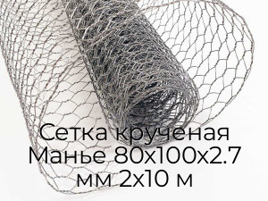Сетка крученая Манье 80х100х2.7 мм 2х10 м - продажа оптом и в розницу по цене от 210 руб. в Москве. Доставка по Москве и всей России