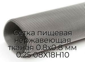 - Сетка пищевая нержавеющая тканая 0.8х0.8 мм 0.25 08Х18Н10 N116132
