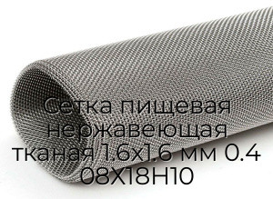 - Сетка пищевая нержавеющая тканая 1.6х1.6 мм 0.4 08Х18Н10 N116144