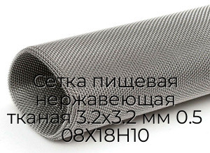 - Сетка пищевая нержавеющая тканая 3.2х3.2 мм 0.5 08Х18Н10 N116163