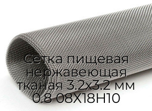 Сетка пищевая нержавеющая тканая 3.2х3.2 мм 0.8 08Х18Н10 - продажа оптом и в розницу по цене от 338 руб. в Москве. Доставка по Москве и всей России