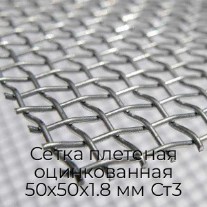- Сетка плетеная оцинкованная 50х50х1.8 мм Ст3 N102696