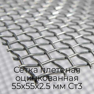- Сетка плетеная оцинкованная 55х55х2.5 мм Ст3 N102703
