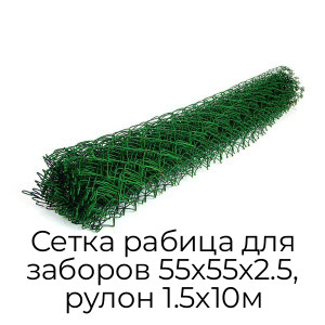 Сетка рабица для заборов 55х55х2.5, рулон 1.5х10м - продажа оптом и в розницу по цене от 4390 руб. в Москве. Доставка по Москве и всей России