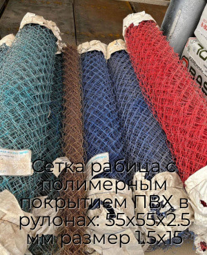Сетка рабица с полимерным покрытием ПВХ в рулонах: 55x55х2.5 мм размер 1.5х15 - продажа оптом и в розницу по цене от 332 руб. в Москве. Доставка по Москве и всей России
