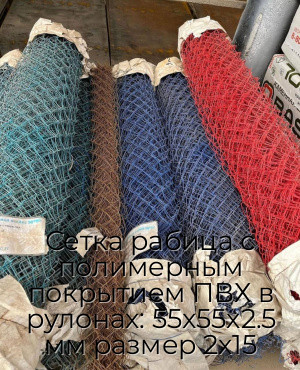 Сетка рабица с полимерным покрытием ПВХ в рулонах: 55x55х2.5 мм размер 2х15 - продажа оптом и в розницу по цене от 338 руб. в Москве. Доставка по Москве и всей России