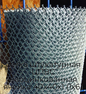 - Сетка штукатурная ЦПВС неоцинкованная ячейка 40х40х1 (1х6) N75840