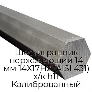 - Шестигранник нержавеющий 14 мм 14Х17Н2 (AISI 431) х/к h11 Калиброванный N3435