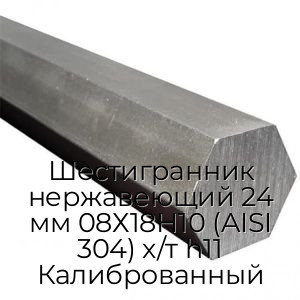 - Шестигранник нержавеющий 24 мм 08Х18Н10 (AISI 304) х/т h11 Калиброванный N3451