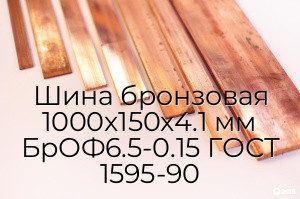 - Шина бронзовая 1000х150х4.1 мм БрОФ6.5-0.15 ГОСТ 1595-90 N104846