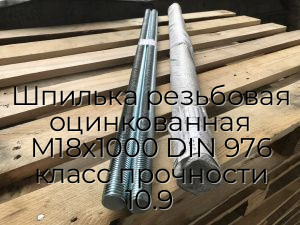 Шпилька резьбовая оцинкованная М18х1000 DIN 976 класс прочности 10.9 - продажа оптом и в розницу по цене от 517 руб. в Москве. Доставка по Москве и всей России