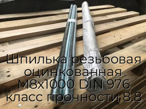- Шпилька резьбовая оцинкованная М8х1000 DIN 976 класс прочности 8.8 N34058