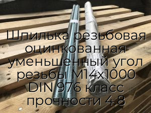 - Шпилька резьбовая оцинкованная уменьшенный угол резьбы М14х1000 DIN 976 класс прочности 4.8 N34067