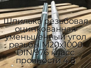 - Шпилька резьбовая оцинкованная уменьшенный угол резьбы М20х1000 DIN 976 класс прочности 4.8 N34070