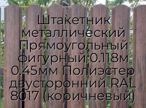 Штакетник металлический Прямоугольный фигурный 0.118м 0.45мм Полиэстер двусторонний RAL 8017 (коричневый) - продажа оптом и в розницу по цене от 265 руб. в Москве. Доставка по Москве и всей России