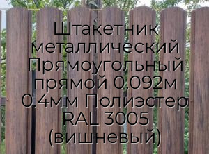 Штакетник металлический Прямоугольный прямой 0.092м 0.4мм Полиэстер RAL 3005 (вишневый) - продажа оптом и в розницу по цене от 205 руб. в Москве. Доставка по Москве и всей России