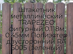 Штакетник металлический TRAPEZEO фигурный 0.118м 0.45мм Полиэстер двусторонний RA 6005 (зеленый) - продажа оптом и в розницу по цене от 154 руб. в Москве. Доставка по Москве и всей России