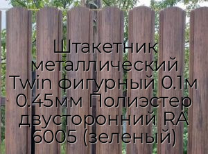 - Штакетник металлический Twin фигурный 0.1м 0.45мм Полиэстер двусторонний RA 6005 (зеленый) N36244