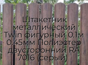 - Штакетник металлический Twin фигурный 0.1м 0.45мм Полиэстер двусторонний RA 7016 (серый) N36259