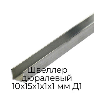 - Швеллер дюралевый 10х15х1х1х1 мм Д1 N96589