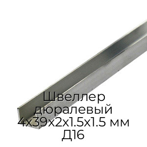 - Швеллер дюралевый 4х39х2х1.5х1.5 мм Д16 N96537
