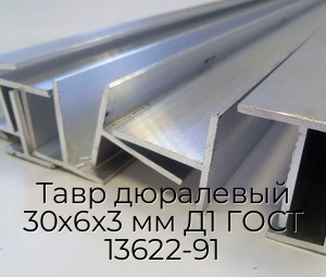 Тавр дюралевый 30х6х3 мм Д1 ГОСТ 13622-91 - продажа оптом и в розницу по цене от 721 руб. в Москве. Доставка по Москве и всей России