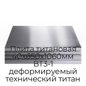 - Плита титановая 40х650х1060мм ВТ3-1 деформируемый технический титан N104403